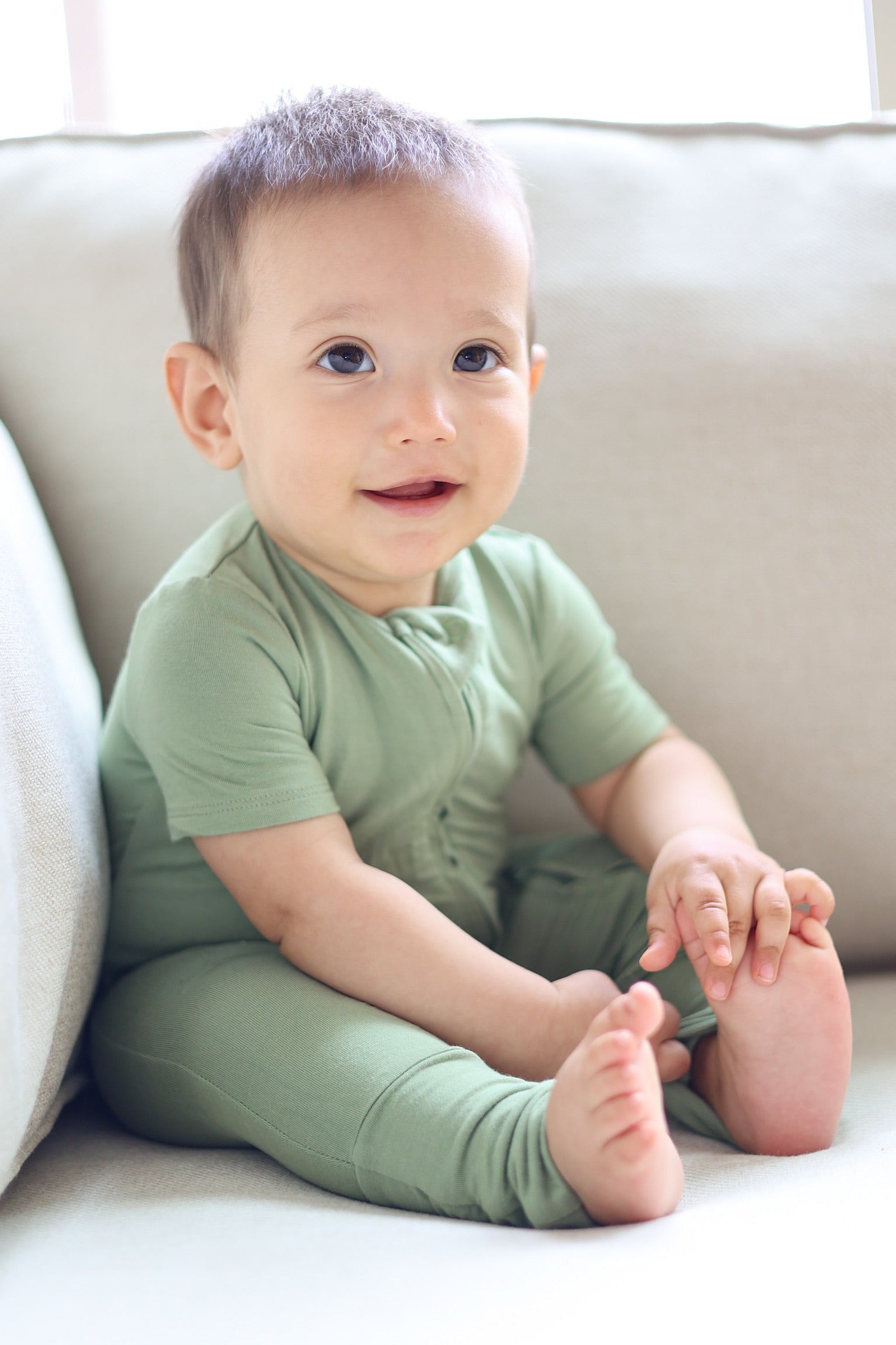 Say hello to the perfect match for your Transition Sleep Sack—our new short sleeve pajamas! Crafted from buttery-soft bamboo viscose, they’re breathable, gentle on baby’s skin, and designed to keep your little one cozy all night long without overheating.